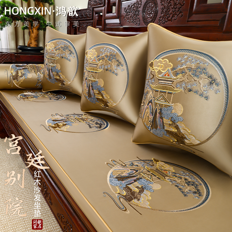 红木沙发坐垫新中式实木沙发家具罗汉床套罩椅垫精美高档刺绣定制
