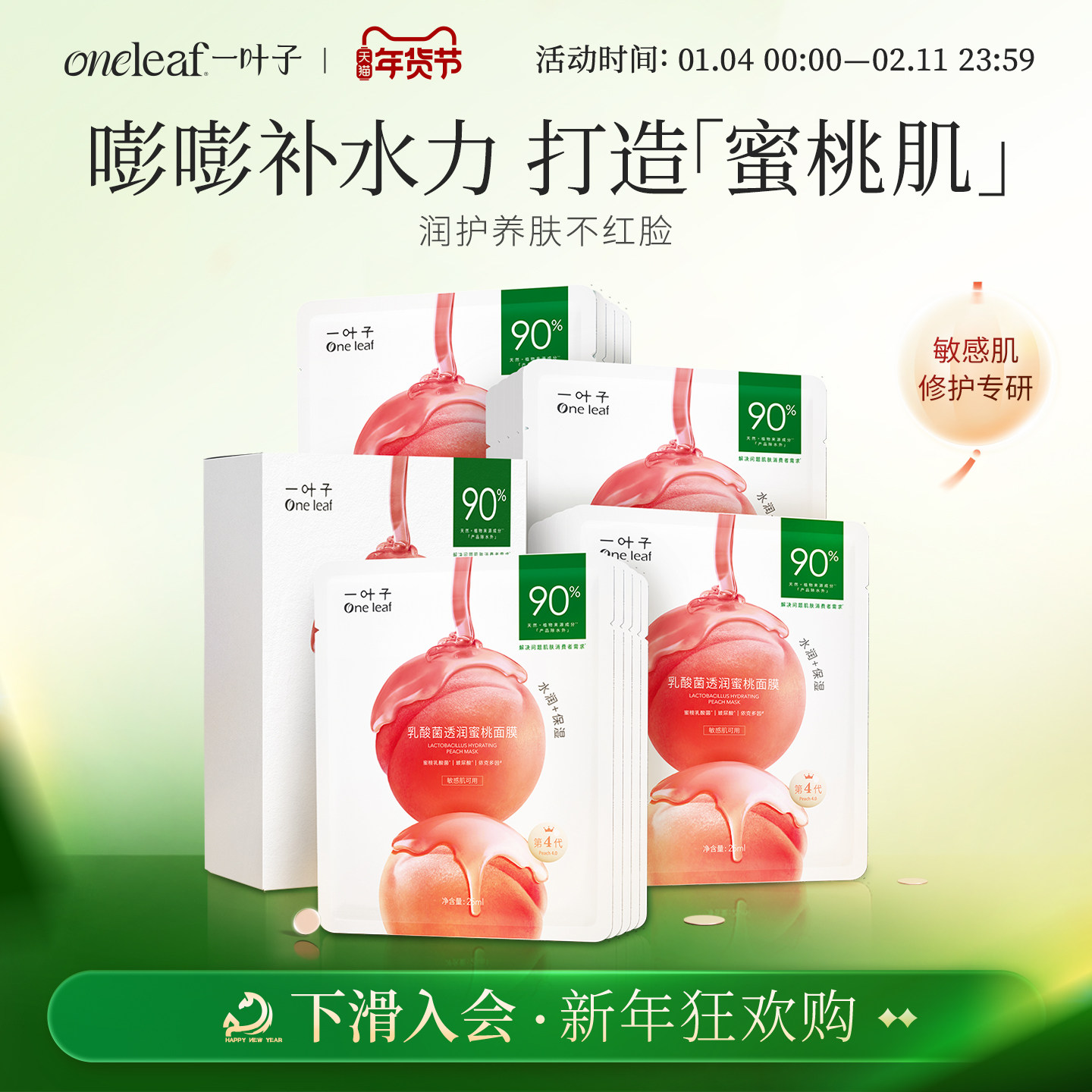 一叶子乳酸菌桃子补水面膜保湿修护润护泛红屏障女护肤品礼盒旗舰