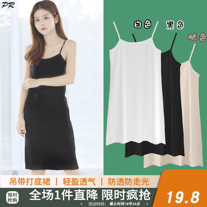 莫代尔打底裙女夏无痕透气吊带背心裙内搭衬裙外穿大码中长款黑色