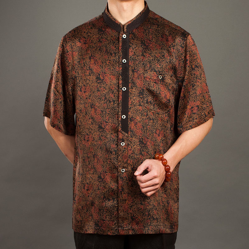 香云纱男士唐装短袖 百福龙高档真丝唐装 中国风男装 男民族服装