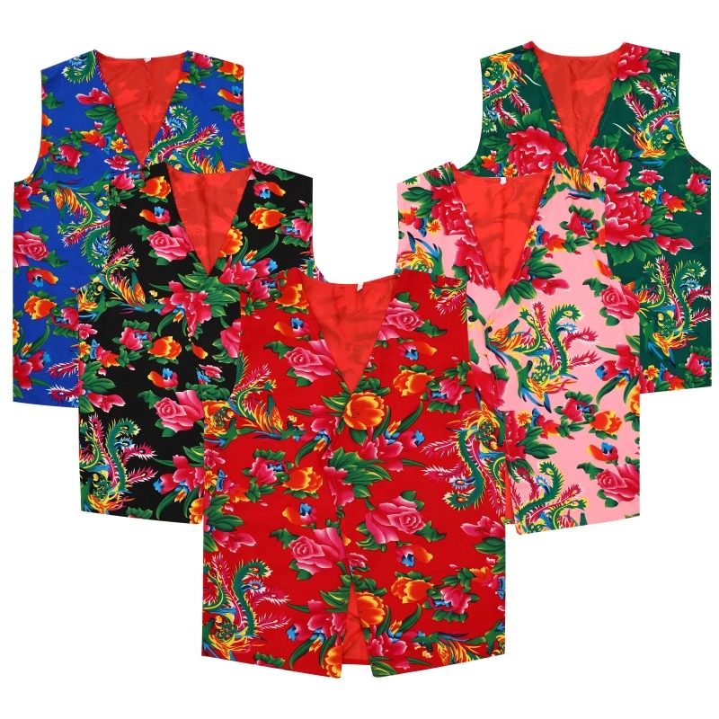 东北大花布马甲男女坎肩民族风舞台姐妹装二人转年会表演网红嘻哈