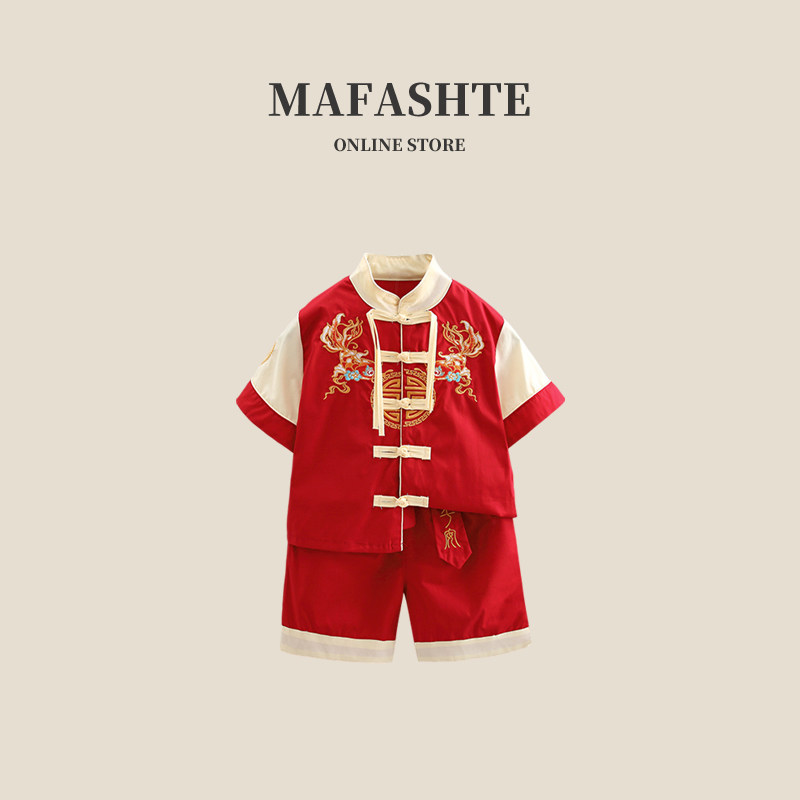男童唐装汉服夏装服装儿童民族衣服男孩套装帅气衣服中式国风短袖