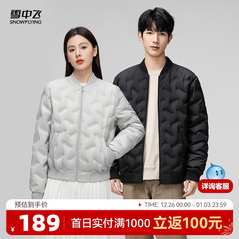 雪中飞2025冬新款男女情侣短款立领羽绒服棒球服户外轻便保暖外套