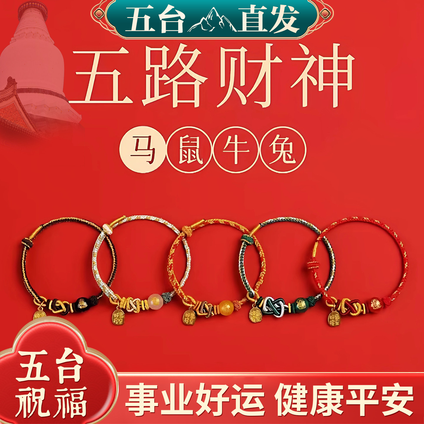2026马年红绳手链五路财神马年本命年编织绳生肖马鼠牛兔太岁手绳