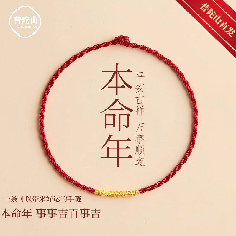 普陀山马年太岁手链本命年护身符属马鼠牛兔羊生肖红色手绳男女款