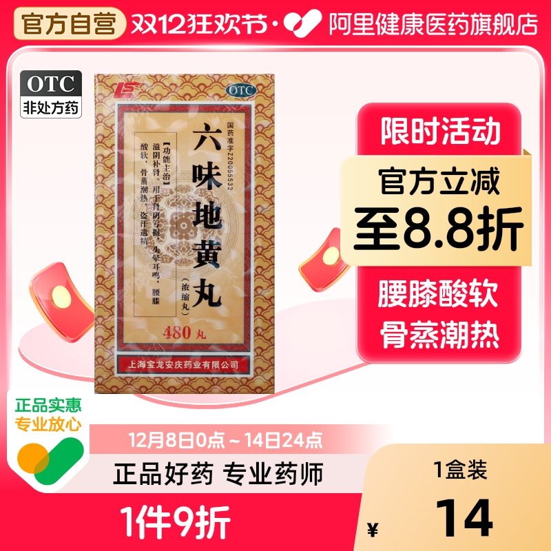 上龙 六味地黄丸480丸浓缩丸肾阴虚补肾官方旗舰店男性盗汗遗精