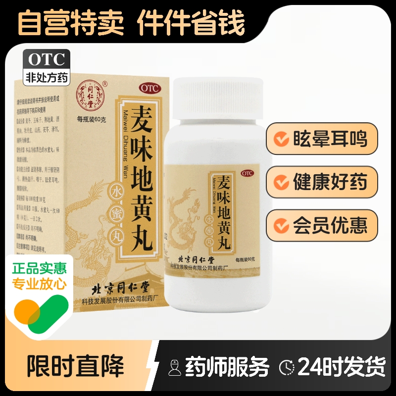 同仁堂麦味地黄丸眩晕耳鸣潮热盗汗肾阴虚滋阴补肾旗舰店官方正品