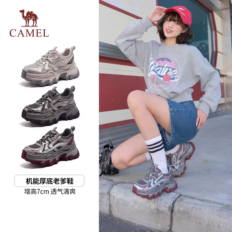 骆驼星驰运动鞋女款2025秋冬新款女鞋透气增高老爹鞋女士休闲鞋子