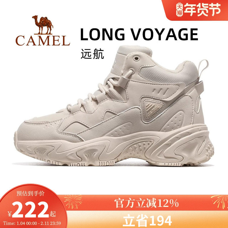 [林依轮直播间]骆驼女鞋运动休闲鞋秋冬中高帮加绒棉鞋防滑徒步鞋