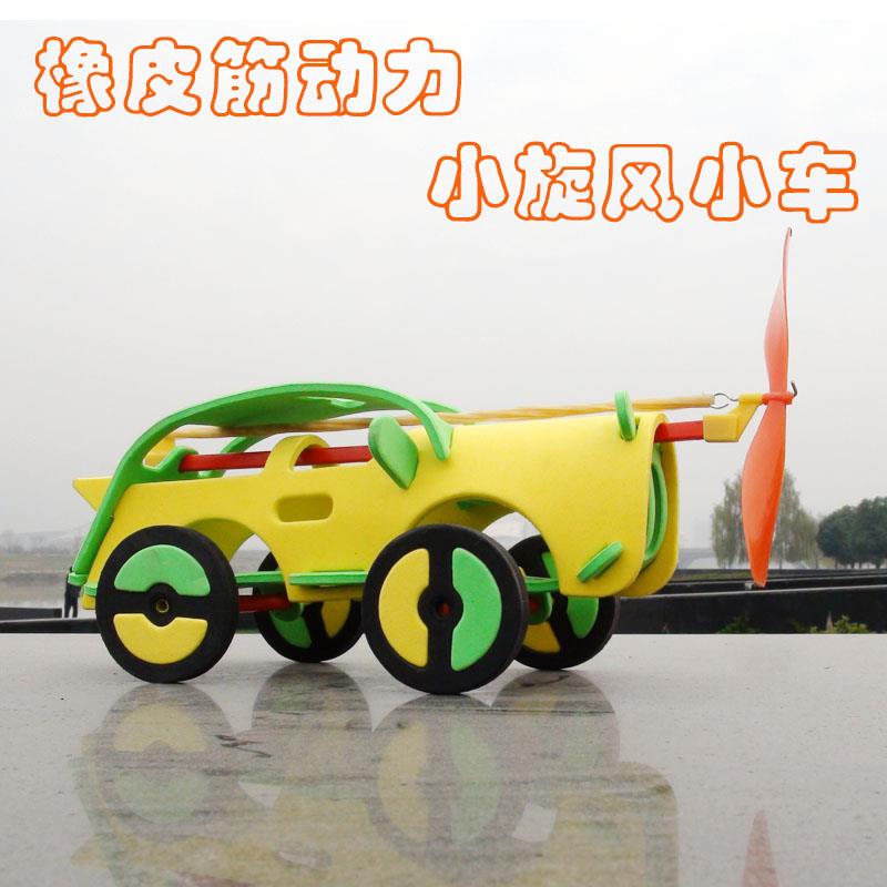 橡皮筋动力模型小旋风空气动力小车 DIY拼装玩具组装车模实验器材