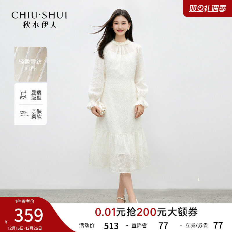 良良家法式名媛茶歇连衣裙女春季新款高级感白色雪纺刺绣鱼尾长裙