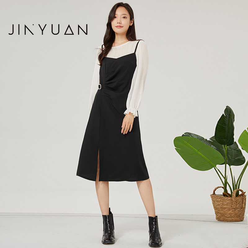 金苑连衣裙女春季新款半透明雪纺上衣吊带裙子两件套G221105