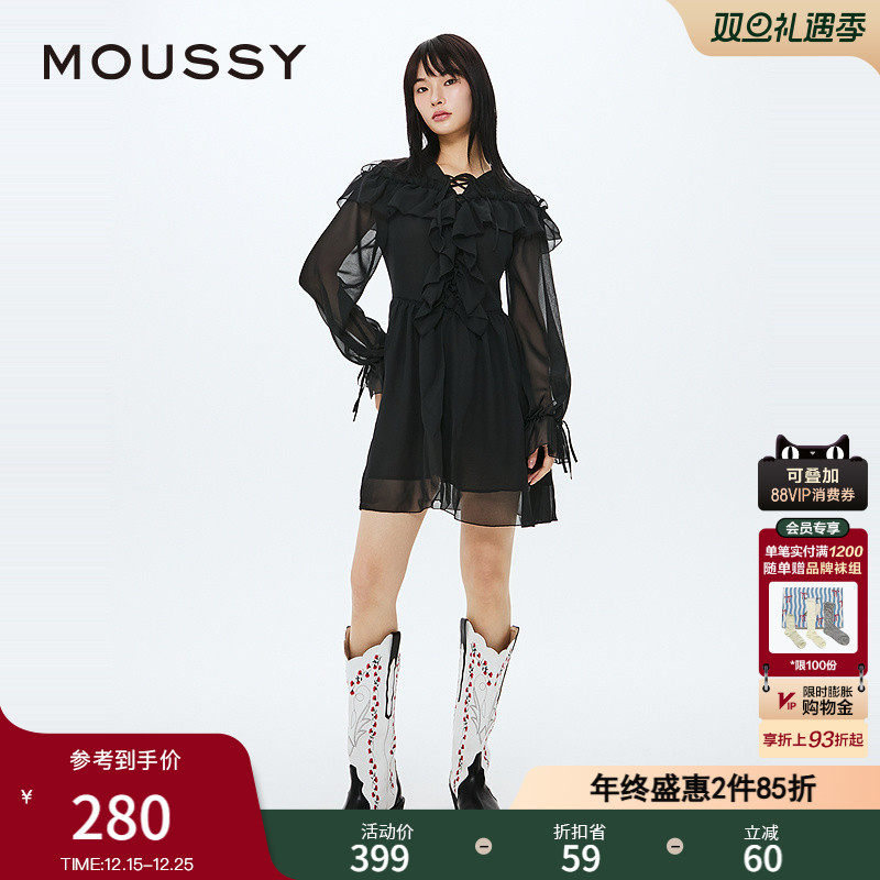 MOUSSY 春季新品法式浪漫优雅短款雪纺连衣裙女028HSZ30-0571