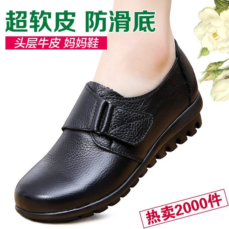 春秋新款真皮妈妈鞋平跟牛筋软底中老年皮鞋防滑休闲工作鞋女单鞋