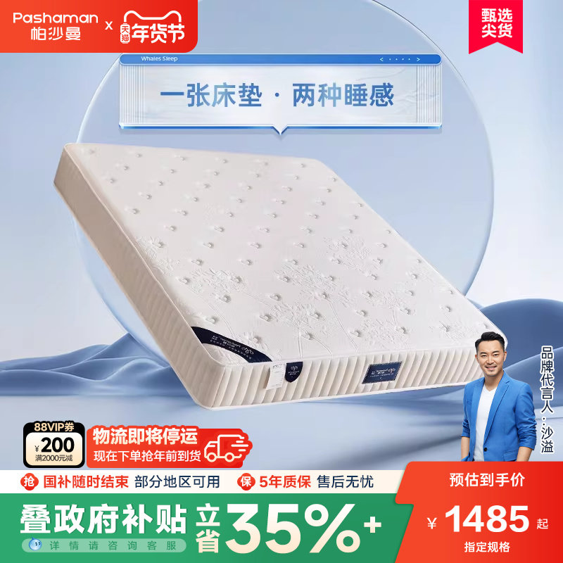 帕沙曼护脊床垫软硬两用卧室席梦思零压力记忆棉棕垫独立弹簧1.8m