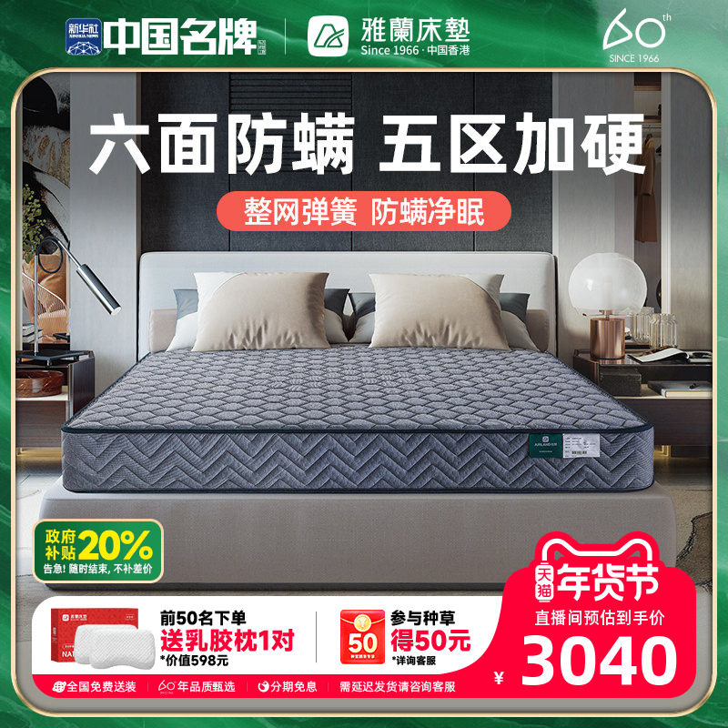 【深睡尊享】雅兰AAAAA级天然乳胶床垫官方1.8m弹簧厚垫十大名牌