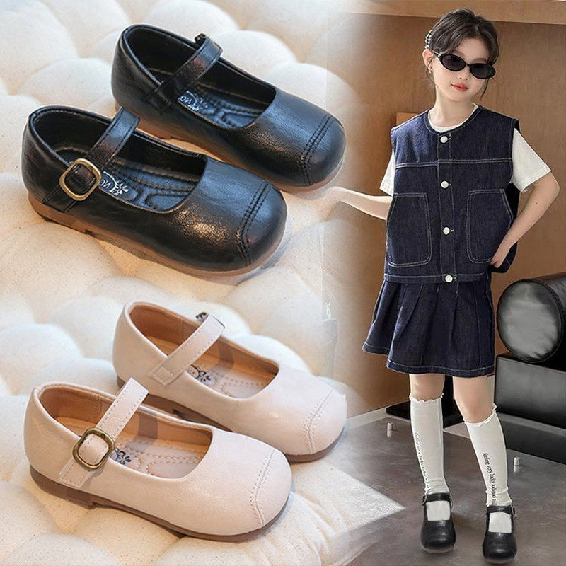 千百度童鞋儿童黑色小皮鞋2025春秋季新款女童单鞋女宝宝乐福鞋