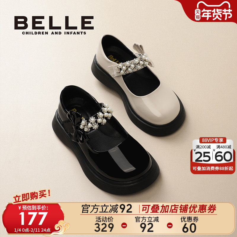 百丽童鞋女童公主鞋2025秋冬新款软底单鞋儿童黑色英伦风大童皮鞋