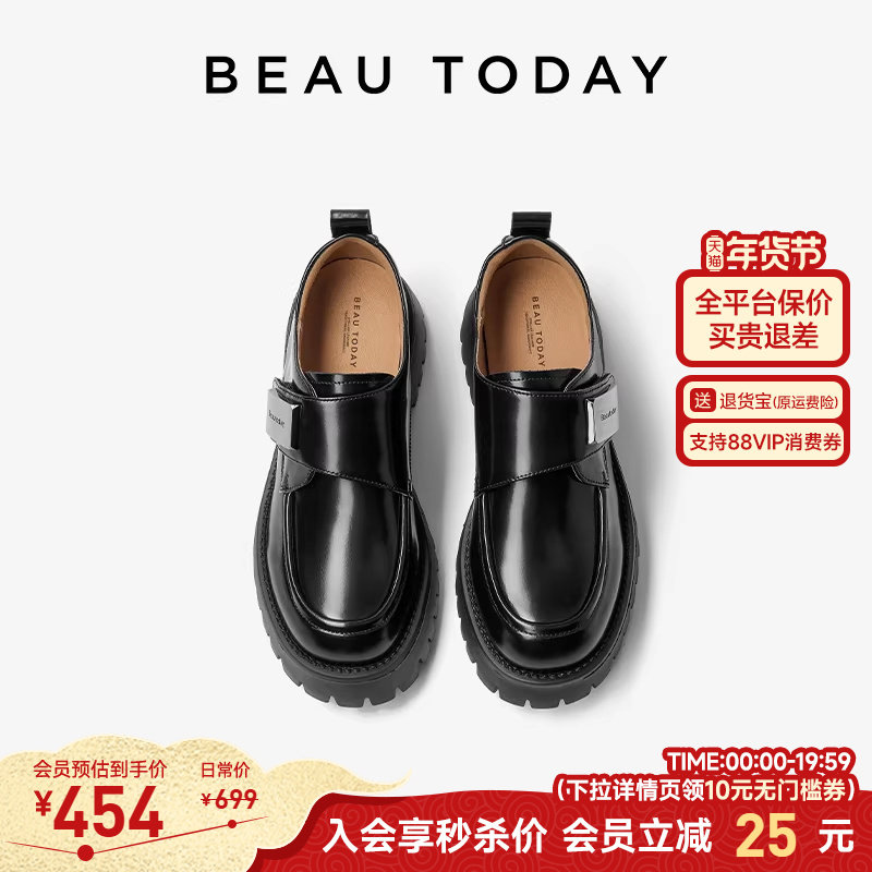 BeauToday黑色乐福鞋女2025新款真皮轻量英伦风小皮鞋厚底单鞋子