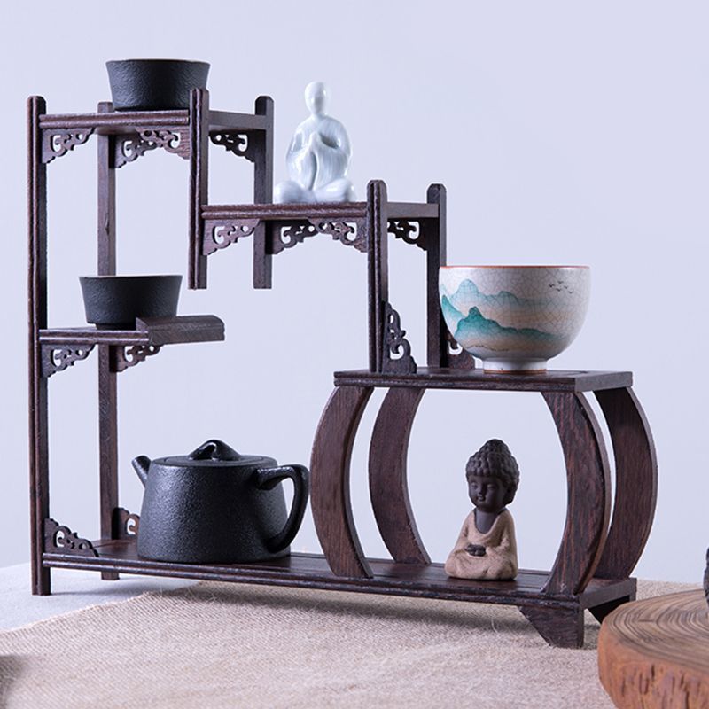 实木架子小型博古架底座 中式桌面摆件红木置物架 茶架茶壶展示架