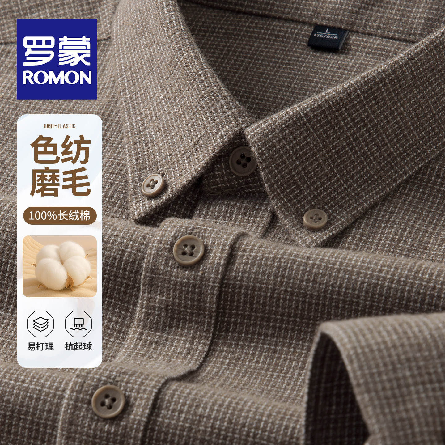 罗蒙双面磨毛衬衫100纯棉秋冬季商务免烫休闲男士长袖衬衣格子