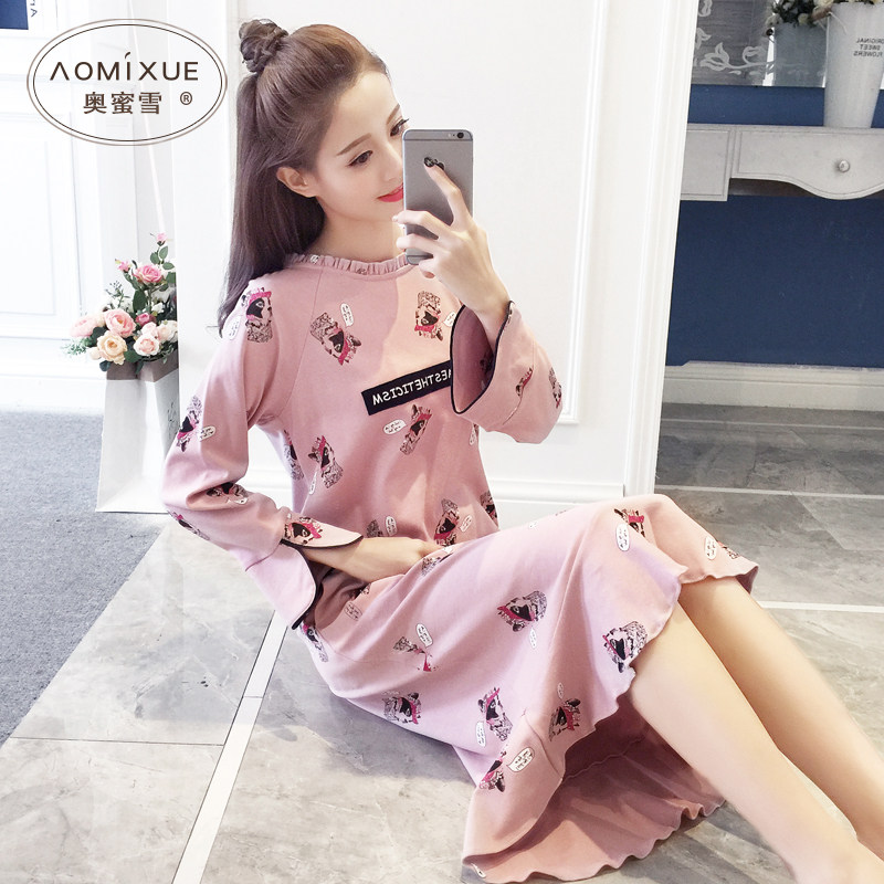 - 睡裙女秋纯棉 长袖