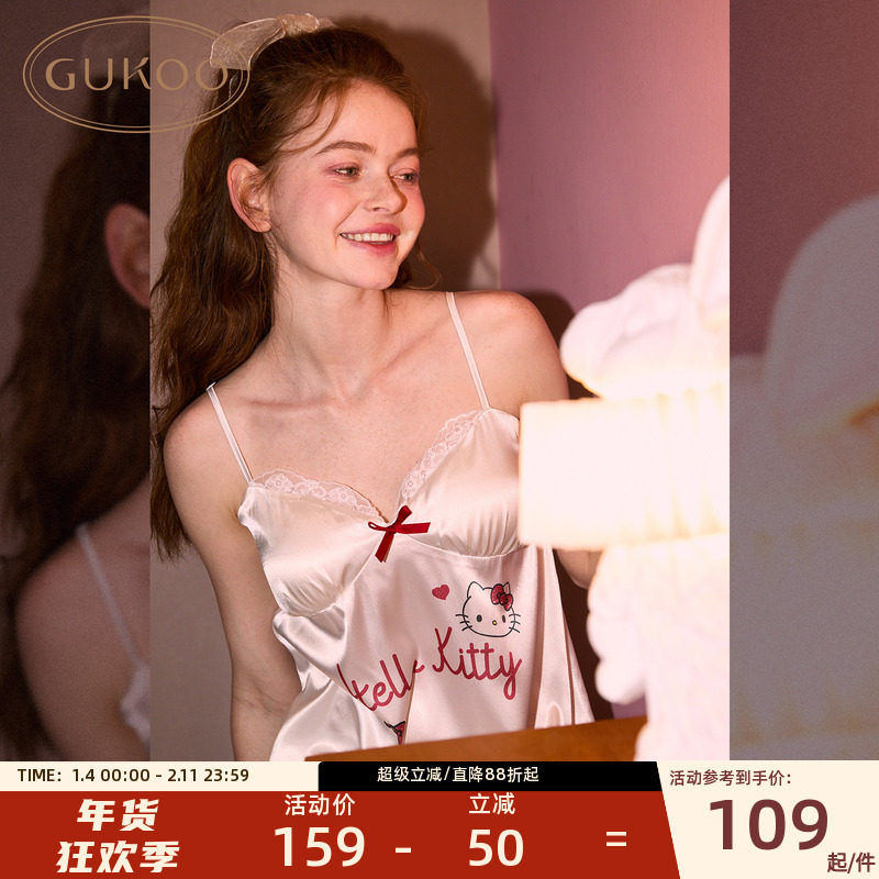Gukoo/果壳女士睡裙性感春秋舒适睡袍HelloKitty系列家居服