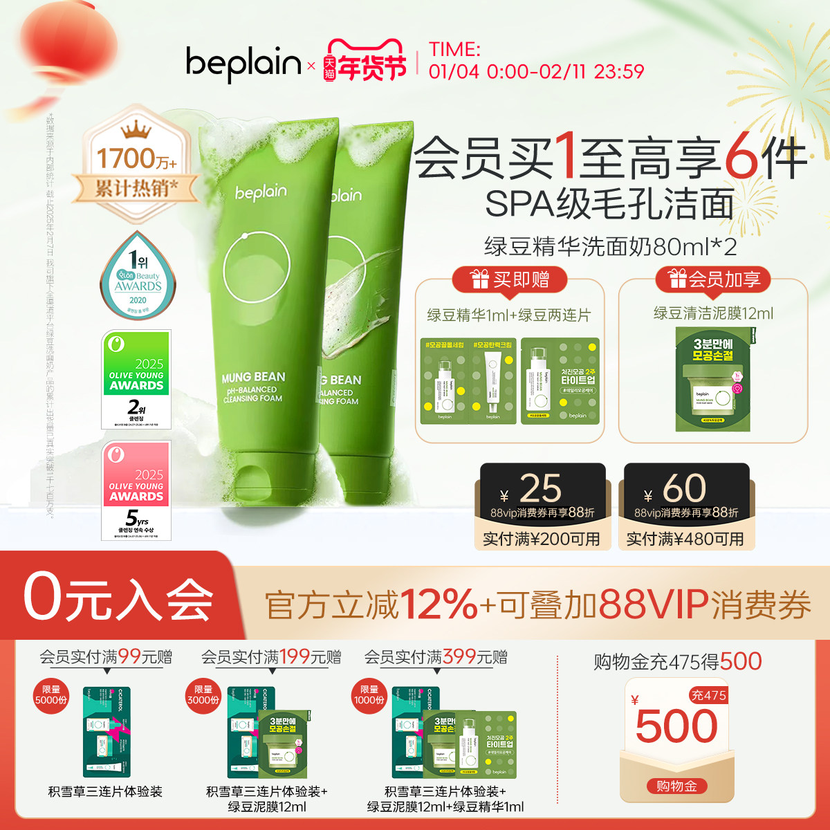 韩国beplain碧菲音绿豆洗面奶女氨基酸洁面乳oliveyoung官方正品