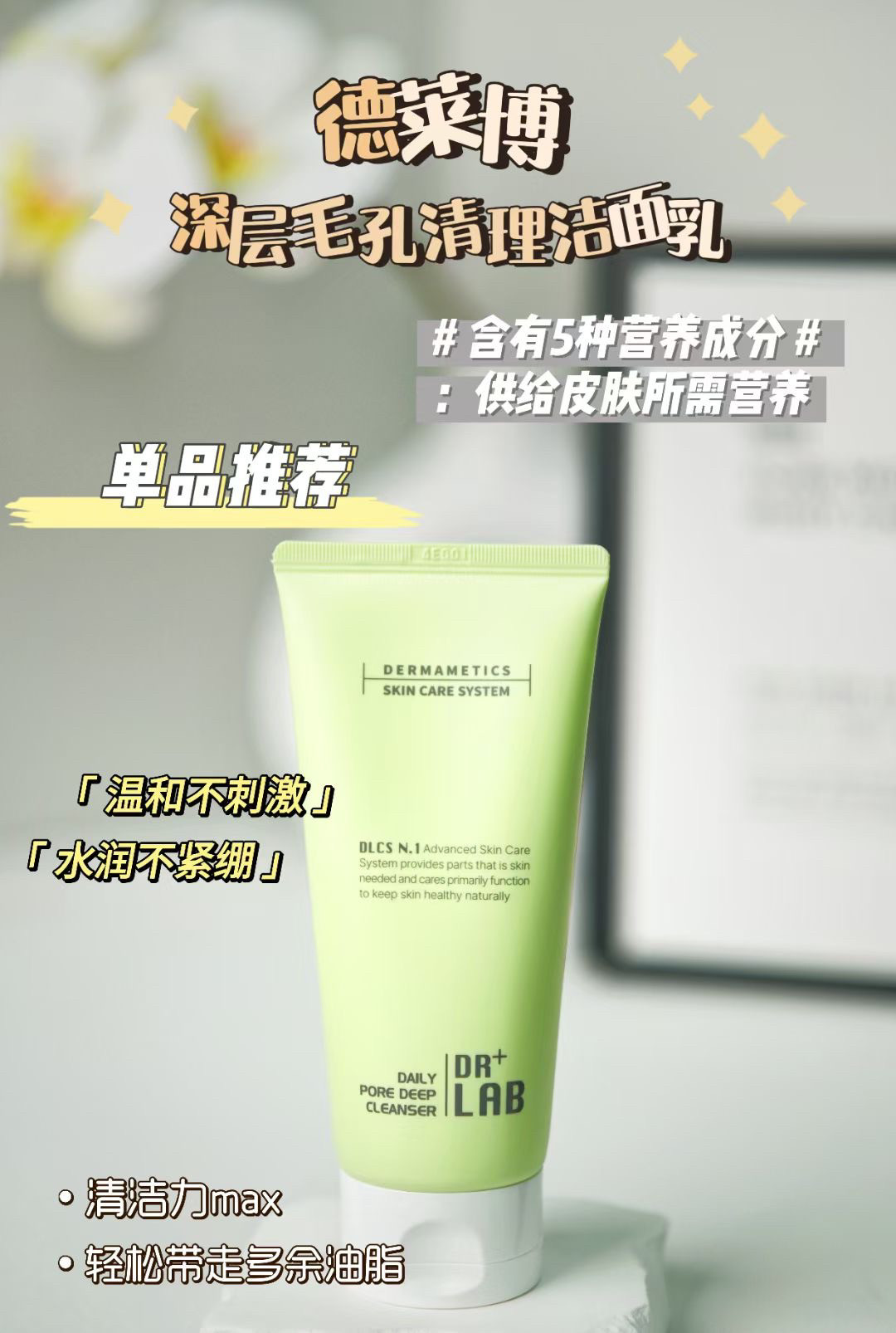 德莱博洗面奶韩国DR+LAB绿色深层毛孔清理洁面乳清洁乳油肌不紧绷