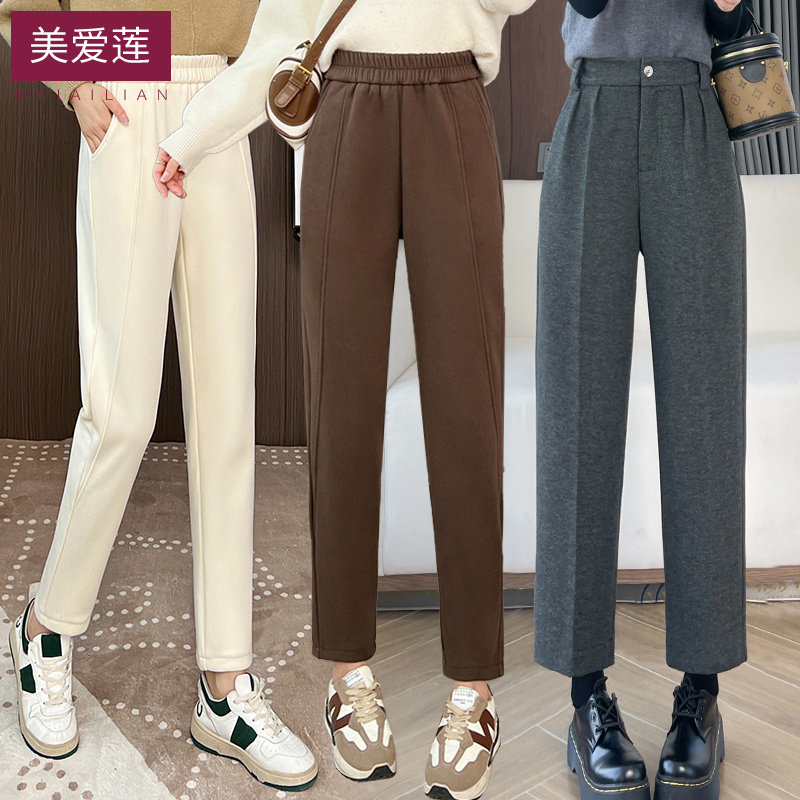 - 秋冬韩版高腰九分毛呢阔腿裤女