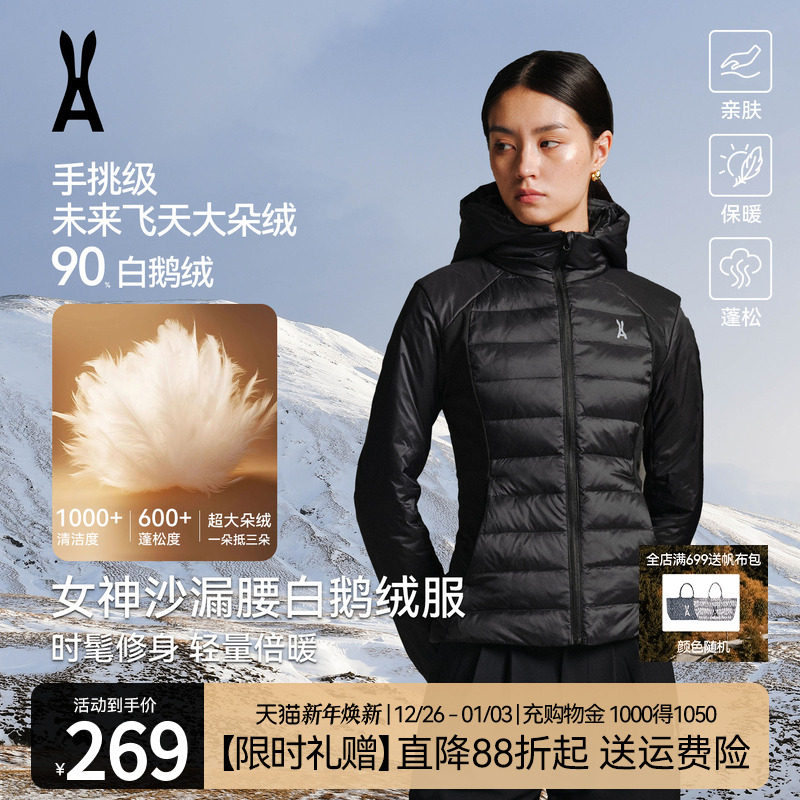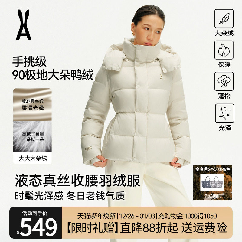【90白鹅】安欧兔沙漏腰轻薄排骨羽绒服女修身弹力内搭拒水可拆帽