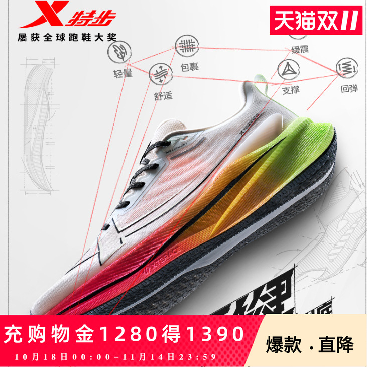特步两千公里三代丨跑鞋男女跑步减震体测训练鞋跑鞋2000公里3代