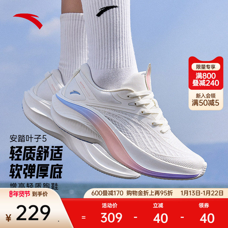 安踏叶子5丨轻质厚底跑步鞋女冬季轻便回弹软底运动鞋增高女鞋子