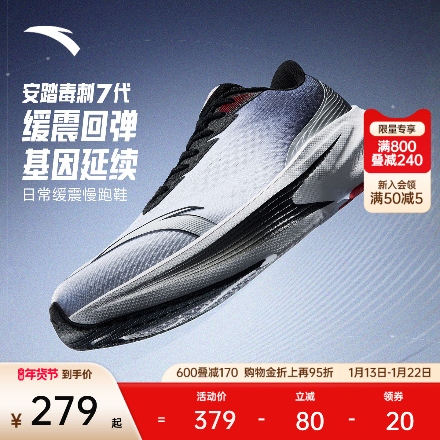 【Z哥同款】安踏毒刺7代丨缓震软底跑步鞋男女同款运动鞋耐磨跑鞋