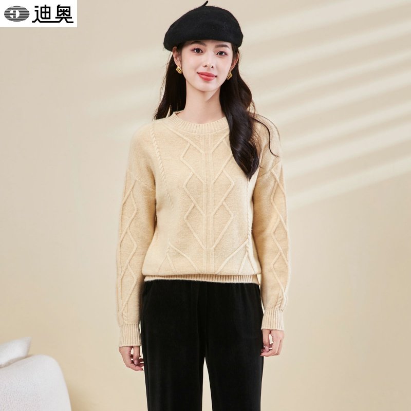 迪奥25秋冬新款高品质圆领套头时尚气质毛衣女宽松慵懒风打底上衣