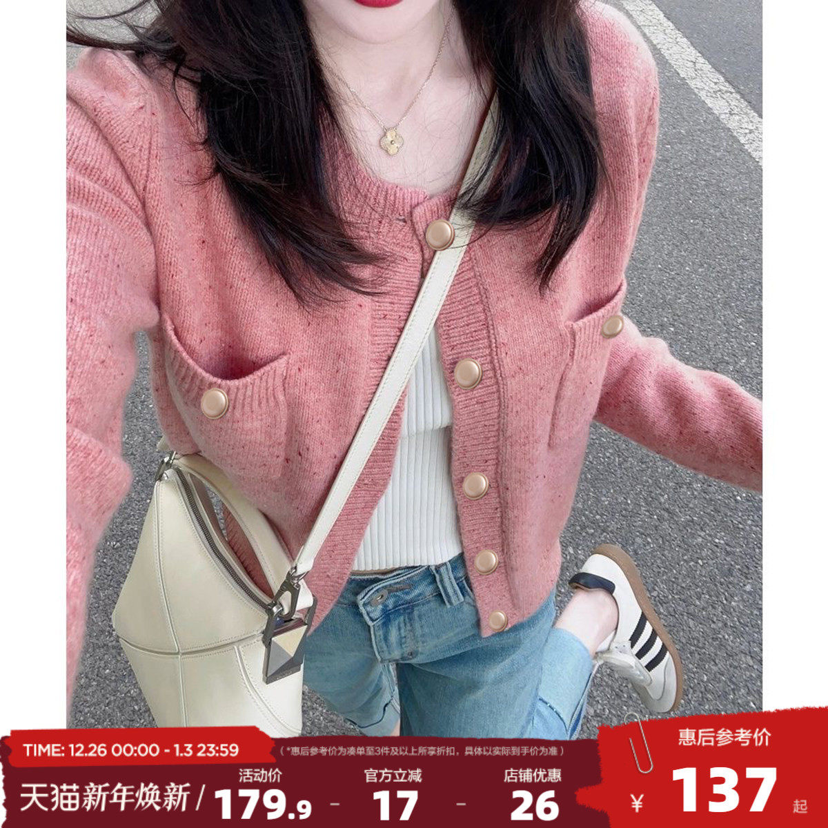 pusumede 头号甜心 复古圆领麻花毛衣开衫外套女气质针织衫上衣