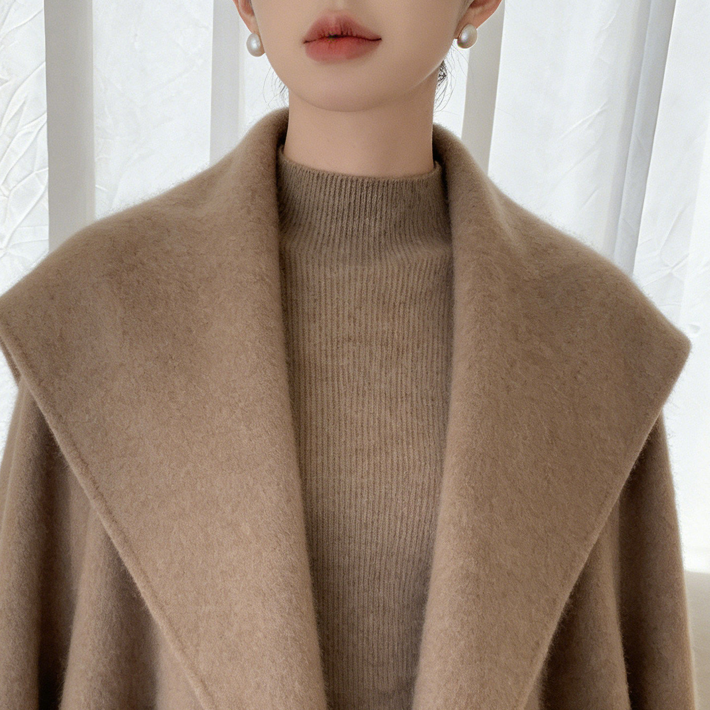高级配大衣无缝半高领驼色气质毛衣女秋冬修身款针织衫内搭打底衫