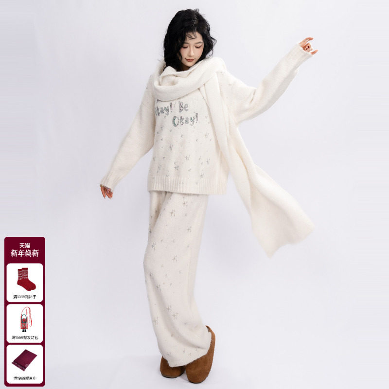 TCH仙女白雪绵羊毛温柔优雅气质毛衣女休闲裤针织套装T75D07E1039