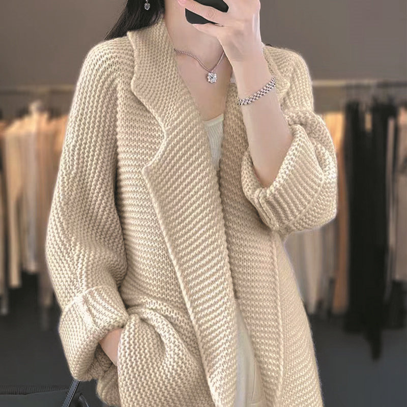 100纯羊毛衫中长版慵懒气质毛衣女高级感白色西装外套女秋季加厚