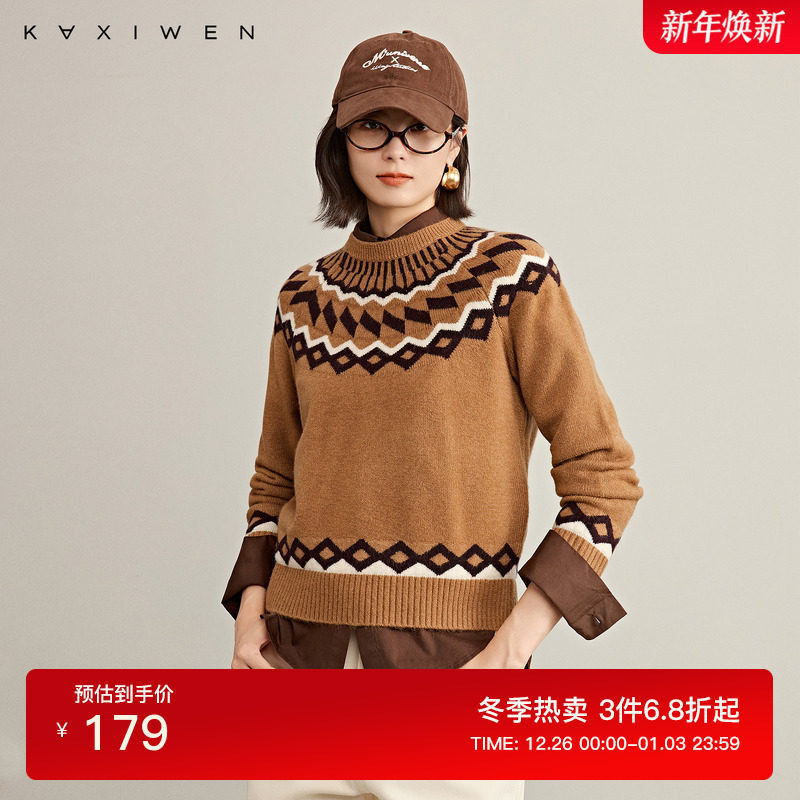 佧茜文费尔岛波西米亚风针织衫2025冬季新款圆领套头气质毛衣女
