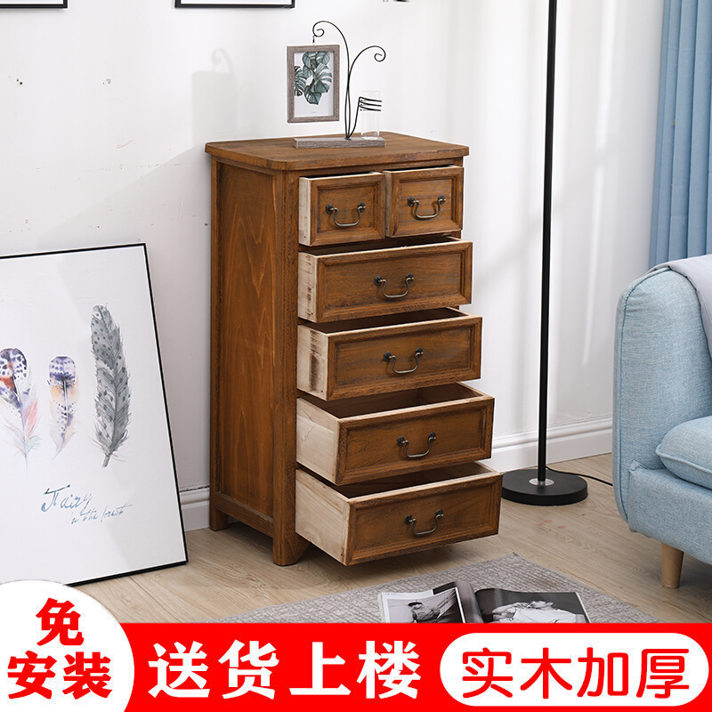 美式斗柜实木夹缝柜多层抽屉式收纳柜复古储物柜卧室床头柜边角柜