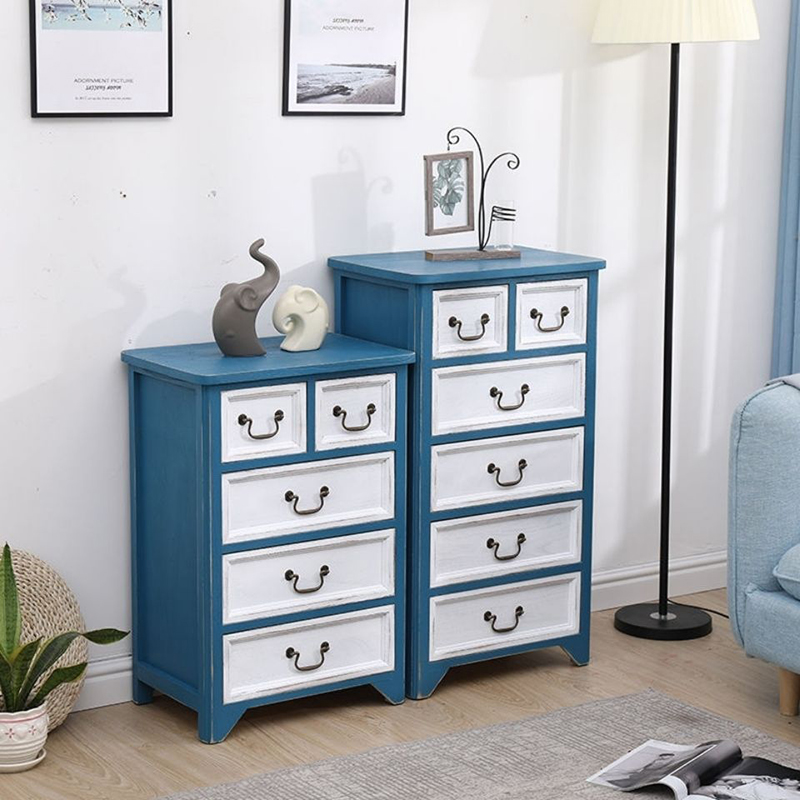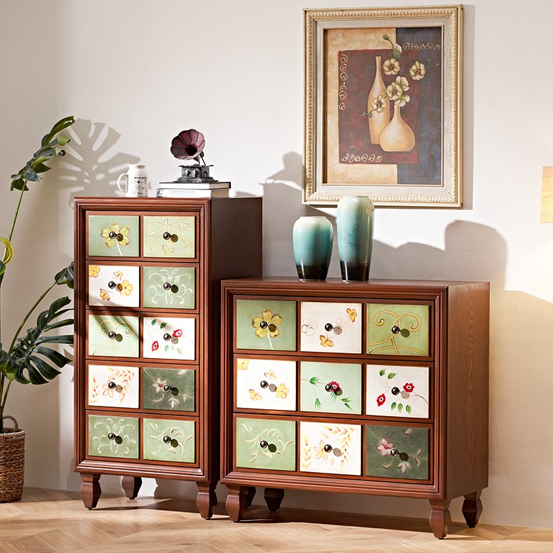 地中海彩绘卧室收纳柜子储物客厅彩绘五斗柜美式斗柜实木装饰柜子