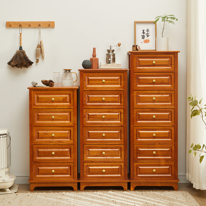 美式斗柜实木夹缝柜客厅收纳柜置物架卧室窄柜边角柜抽屉床头柜子