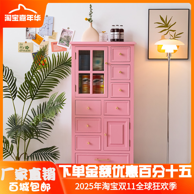 清仓ins风美式斗柜实木收纳柜花园入户柜多层家用储物柜窄柜G919