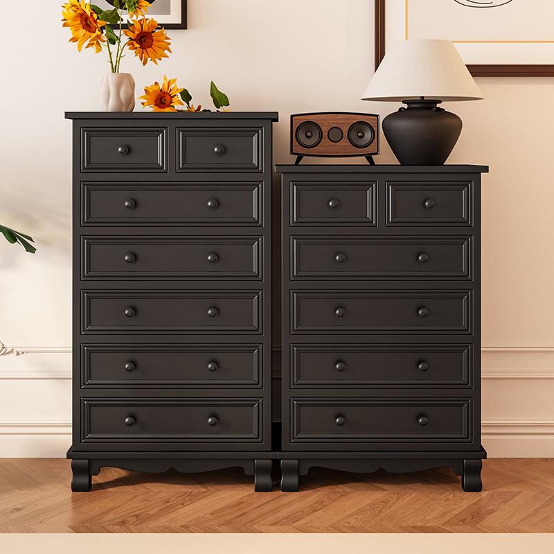 美式实木五斗柜卧室黑色简约抽屉柜子靠墙轻奢立柜床尾收纳柜客厅
