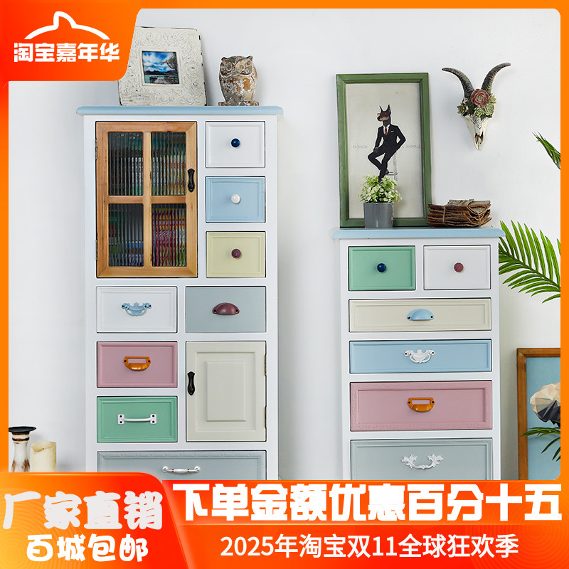 实木地中海收纳柜储物柜复古斗柜做旧美式客厅阳台柜玄关抽屉柜子