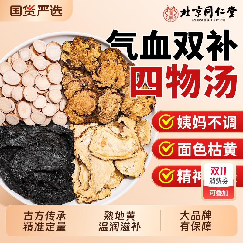 北京同仁堂四物汤搭桃红补气养熟血地黄当归中草药材包信盛堂白芍