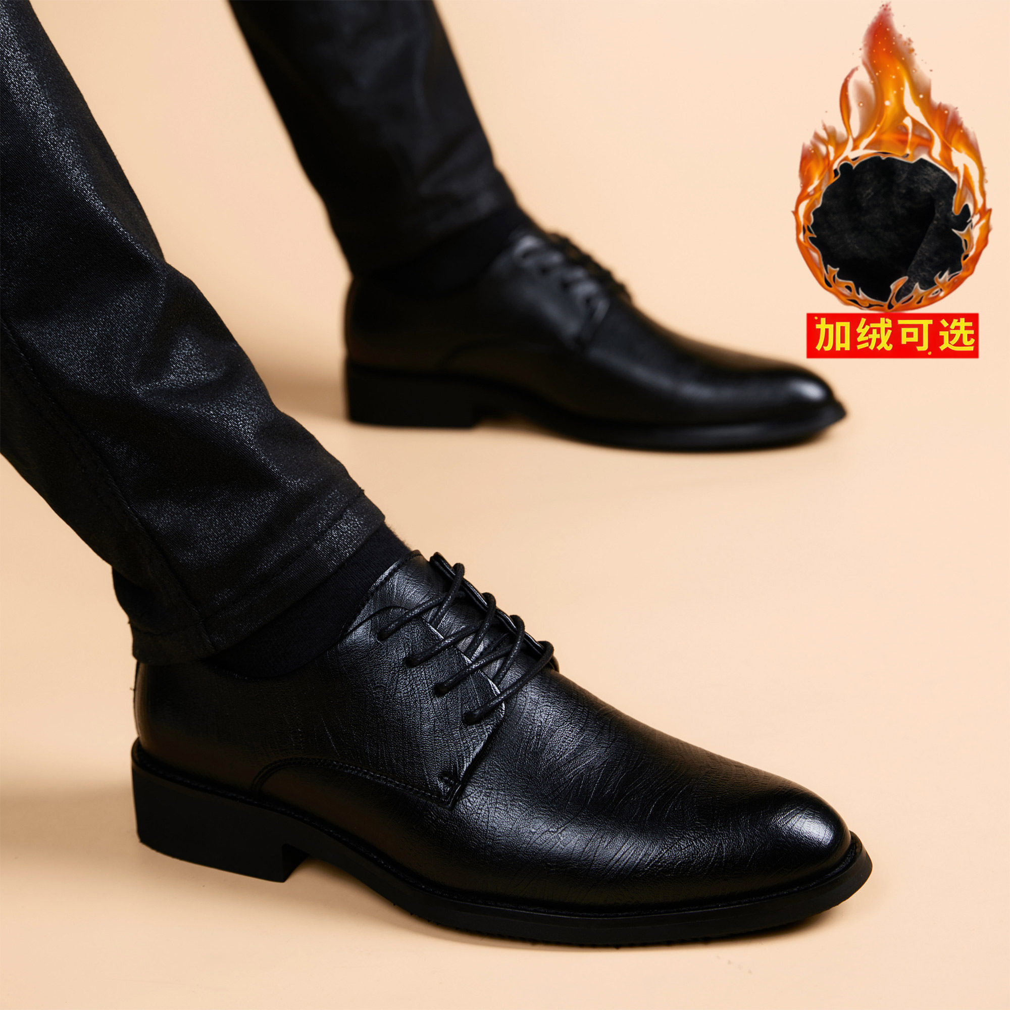 皮鞋男商务正装韩版潮流英伦男士真皮休闲冬季棕色软底内增高男鞋