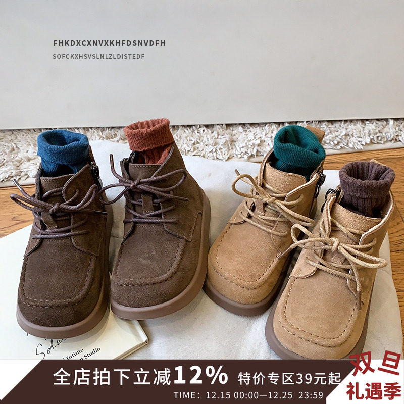 韩版儿童短靴秋冬女童马丁靴勃肯男童单靴软底时尚靴子真皮鞋子潮
