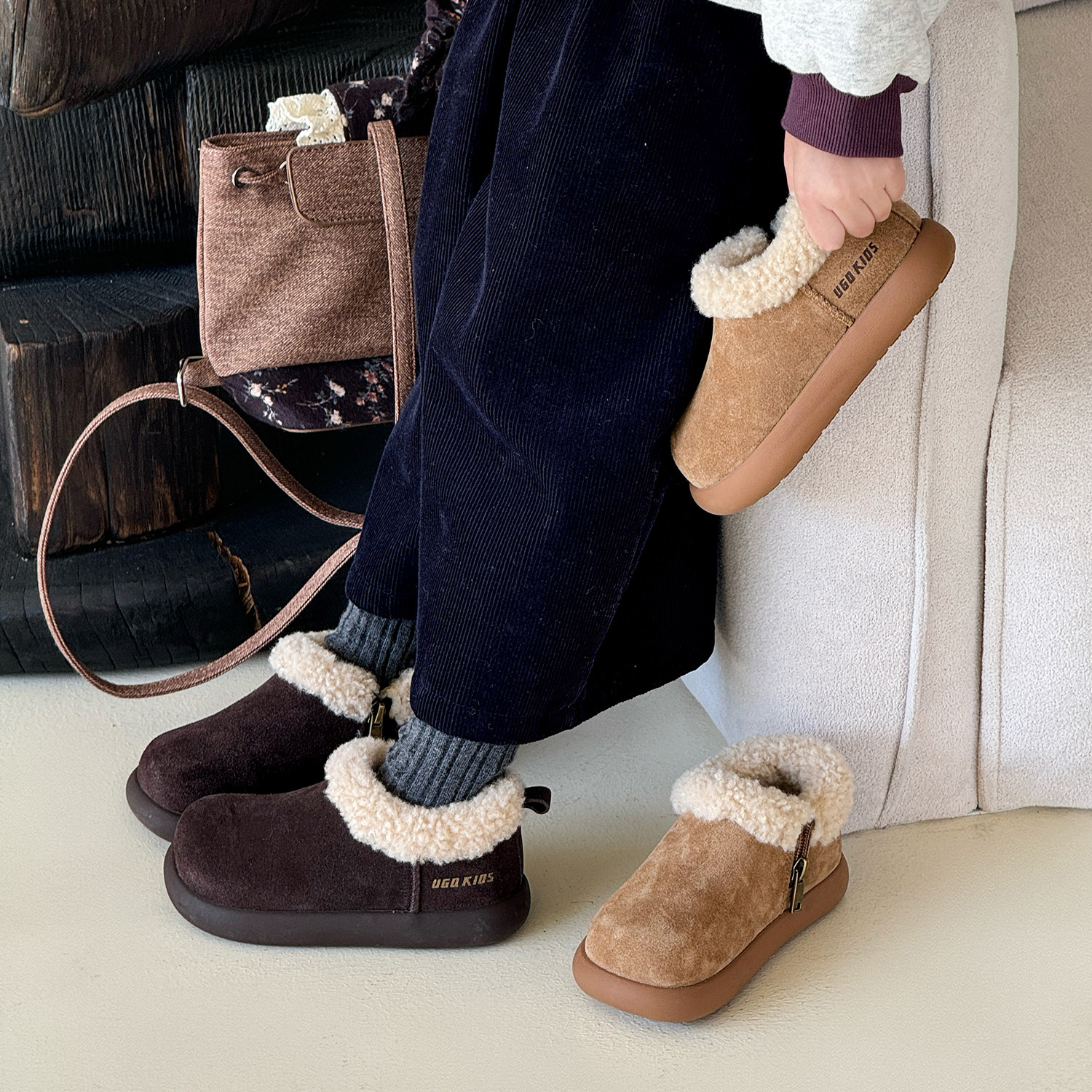 韩版真皮儿童雪地靴加绒加厚女童靴子勃肯鞋2025新款冬鞋男童棉鞋